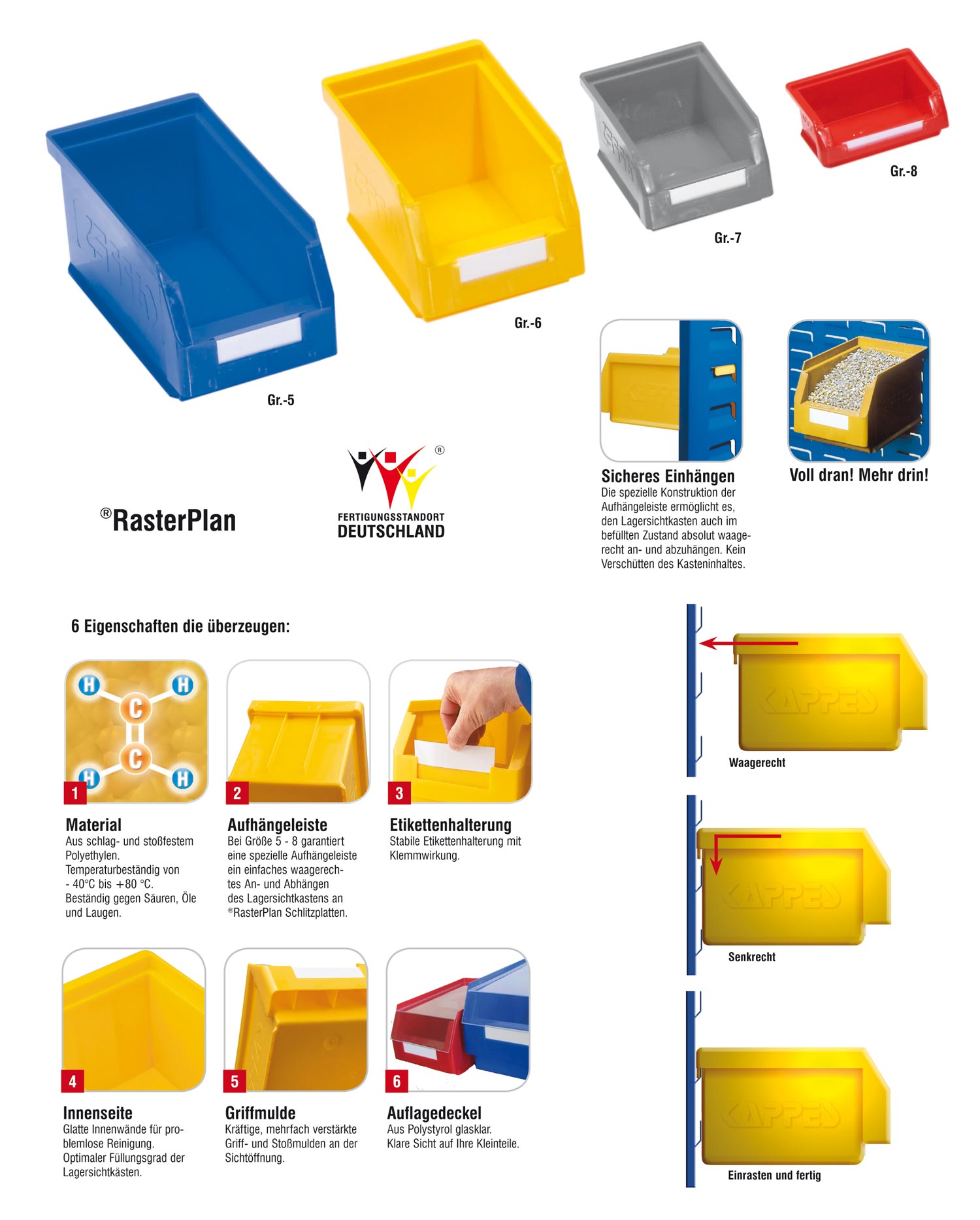®RasterPlan Schlitzplatten Einsteigerset 3 RAL 5010. 1 x Schlitzplatte H 450 x B 1000 mm 6 x Lagersichtkästen Größe 6 16 x Lagersichtkästen Größe 7 8 x Lagersichtkästen Größe 8.