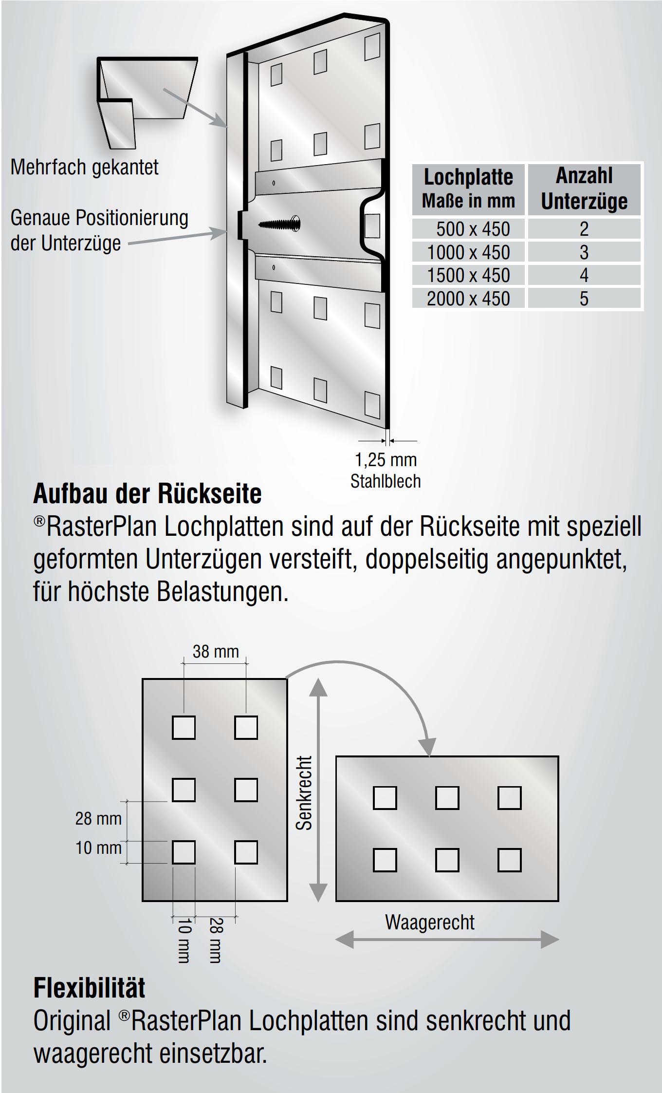 ®RasterPlan Doppelte Werkzeugklemme Durchmesser 6 mm Alufarben ®RasterPlan Werkzeughalter schaffen Übersicht und Ordnung. Das ®RasterPlan Programm hat für jedes Werkzeug den richtigen Halter. Robust und stabil, konzipiert für langlebigen industriellen Einsatz. Schlag- und kratzfeste Kunststoffbeschichtung Geprägte Grundplatten 1,5 mm stark 2 Ordnungsfarben: Alufarben und Anthrazitgrau GS-geprüftes Werkzeughaltersystem Inklusive Original ®RasterPlan Schraube. Der patente Dreh: Die original ®RasterPlan Schraube aus Polyamid schützt auch bei mehrfachem Umhängen der Werkzeughalter die ®RasterPlan Lochplatten-Oberfläche. ®RasterPlan Werkzeughalter werden einfach in die Lochung eingehängt und mit einer kleinen Schraubendrehung fest arretiert. Sorgt für sicheren Halt.
