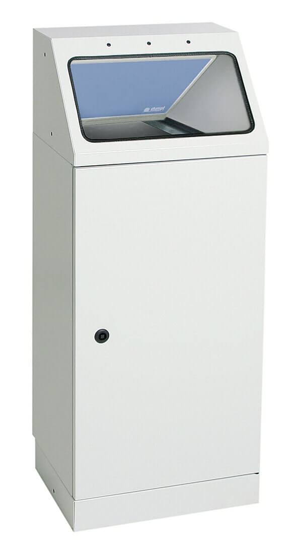 Abfallsammler mit offenstehenden Einwurfklappen. Ideal für die Wandbefestigung in Fluren und Korridoren. Ein gebrauchsmustergeschütztes Verfahren gewährleistet, dass die Einwurfklappe im Brandfall selbsttätig schließt. Der Sammler ist aus vollständig verzinktem Qualitätsstahlblech gefertigt und hochwertig strukturiert pulverbeschichtet. Im Behälterinnern sorgt ein Innenbehälter aus ebenfalls verzinktem Stahlblech für optimale Abfallaufnahme. Das Fassungsvermögen beträgt 45 Liter. Zur Entnahme der Abfälle werden nach Öffnung der verschließbaren Flügeltür (Vierkantschlüssel wird mitgeliefert) die verzinkten Innenbehälter nach vorne heraus geschwenkt. Zur farblichen Kennzeichnung der Einwurfklappe liegt jedem Sammlern ein Set mit drei ProPads (= protect-pads, hochrobust, selbstklebend) in den Farben blau, gelb und anthrazit bei. Der Behälter wird vollständig in Deutschland gefertigt und ist TÜV/GS geprüft. Der Hersteller gewährt eine Garantie von 5 Jahren. Außerdem ist der Behälter zertifiziert selbstlöschend und als nicht brennbar eingestuft (gem. DIN 4102, Brandschutzklasse A1). Farbgebung Korpus: lichtgrau RAL 7035, Farbgebung Einwurfklappe: ProPad taubenblau RAL 5014.