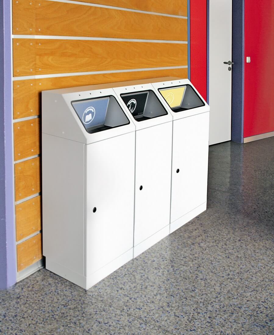 Abfallsammler mit offenstehenden Einwurfklappen. Ideal für die Wandbefestigung in Fluren und... mehr